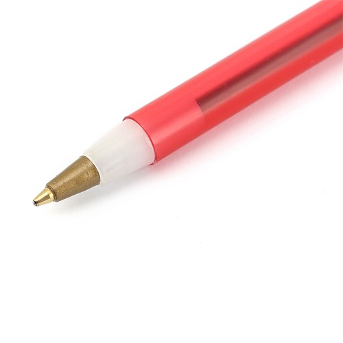 Bolígrafo de capucha de diseño clásico con cuerpo de suave acabado transparente en cálidos colores. Tinta azul.