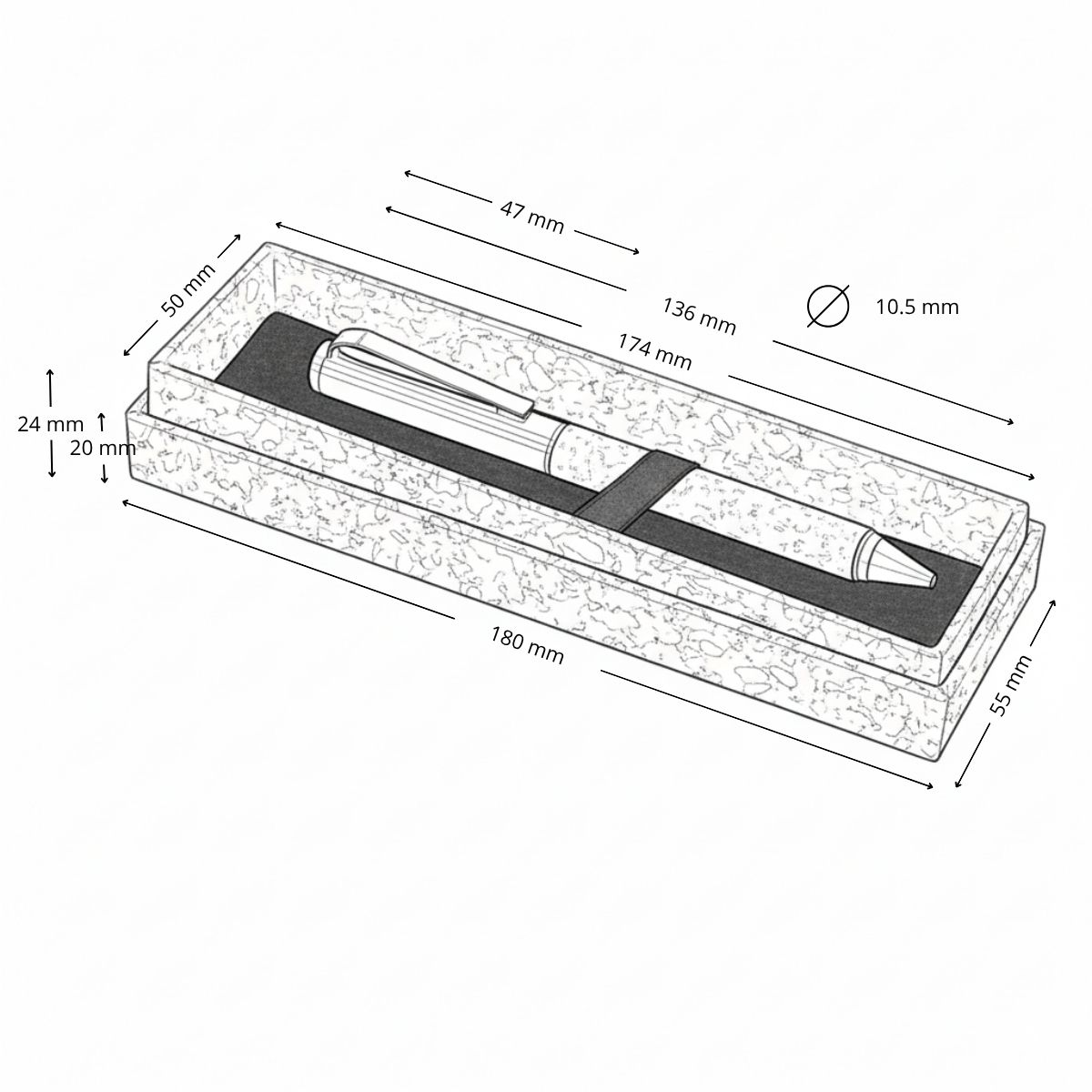 Presentación en caja: 180 x 55 x 24 mm