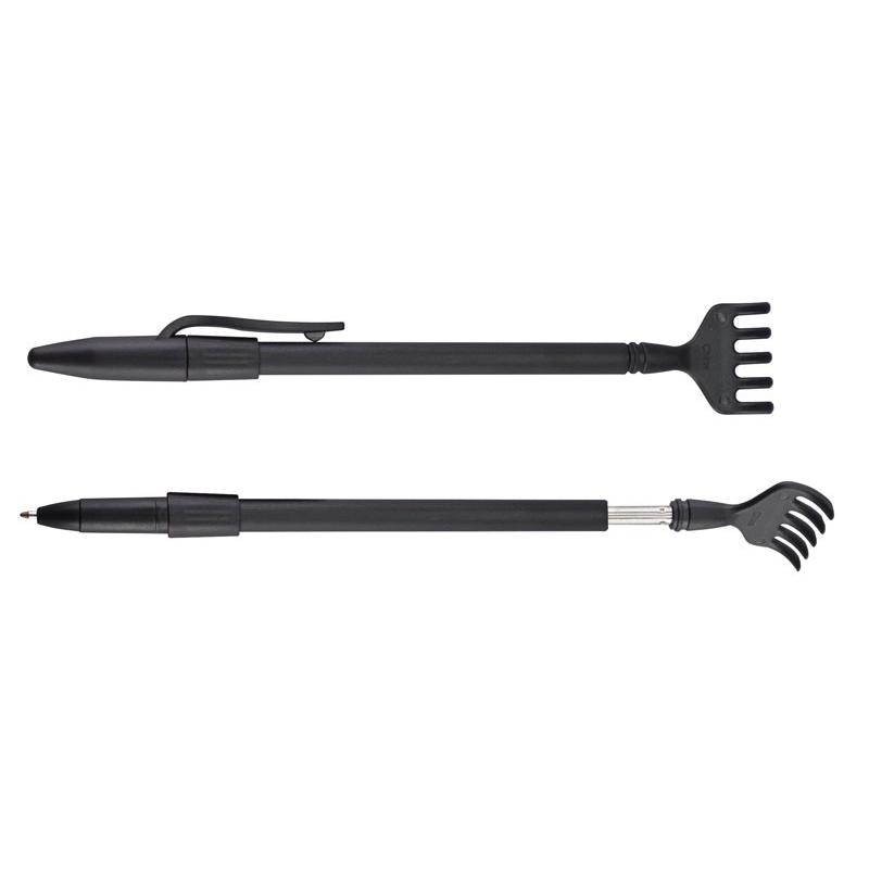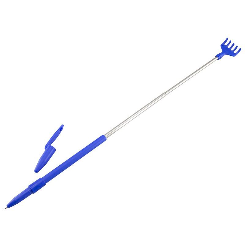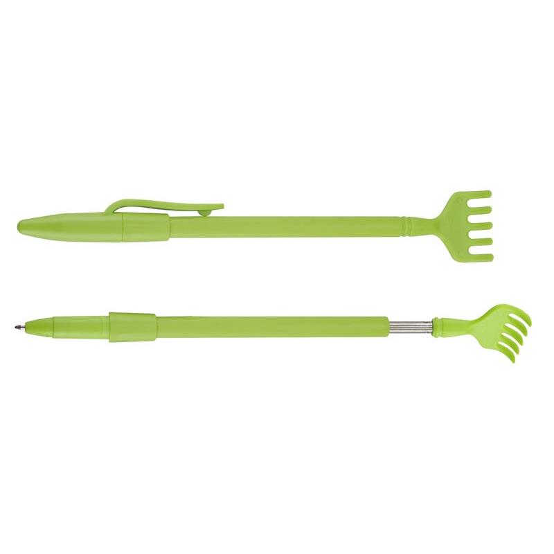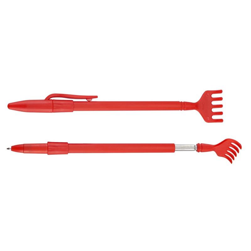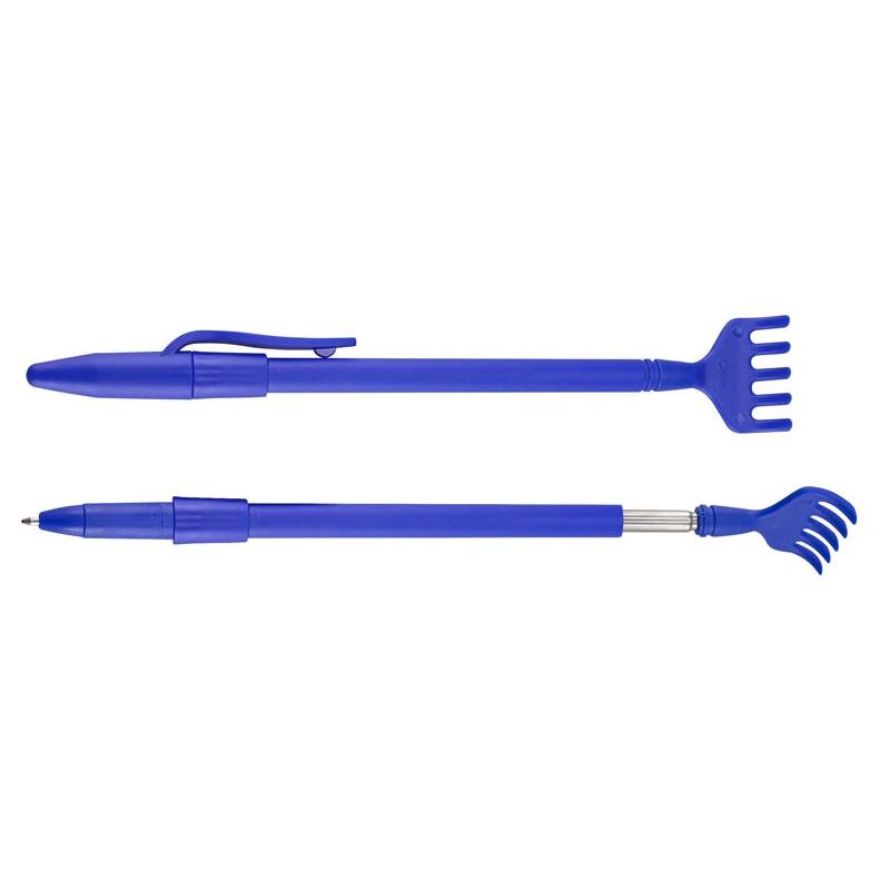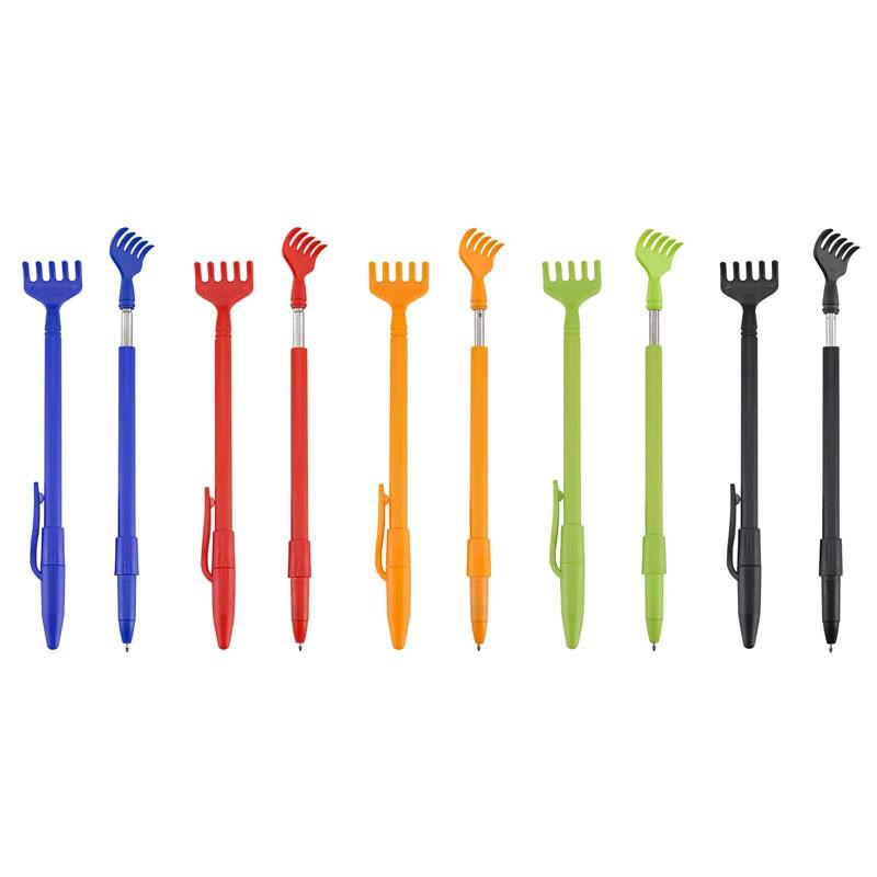 Bolígrafo plástico de color con tapa, con Manito Rascadora expansible (tipo antena). Escritura azul.