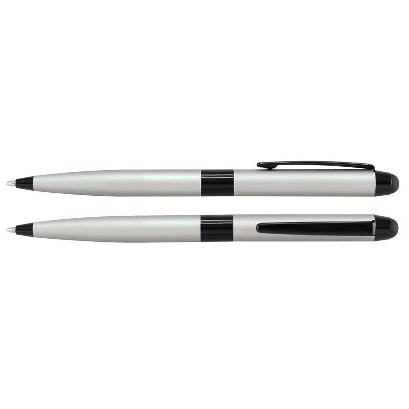 Bolígrafo Metálico modelo “Bauhaus”, cuerpo satinado color mate, con goma posterior negra “Touch-Screen” para pantalla táctil. Escritura negra.
