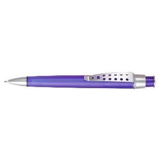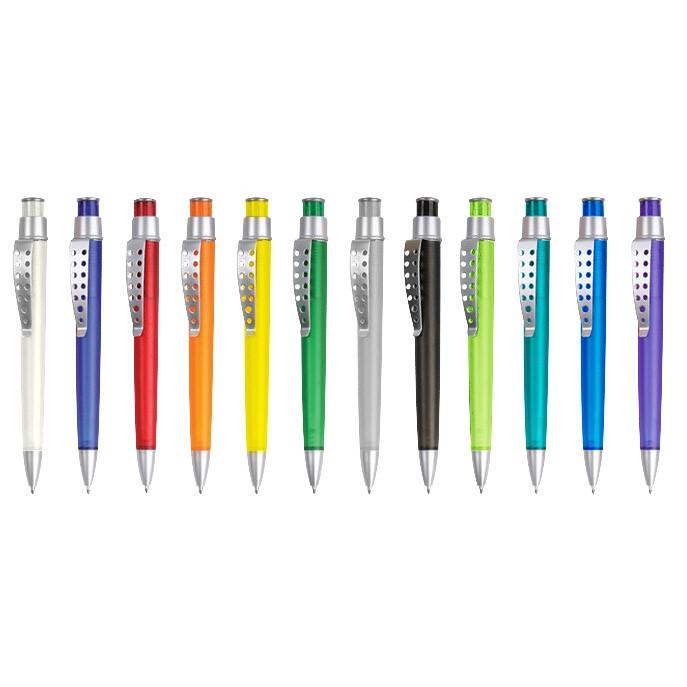 Bolígrafo plástico color frozen modelo “Evolution” con clip metálico con orificios. Escritura azul.