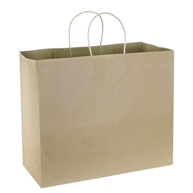 Bolsa de Papel kraft 100% reciclable y reutilizable. Fabricada en resistente material natural de 150g/m2. Contiene asas de papel prensado al tono. Tiene capacidad de 5kg de carga.
