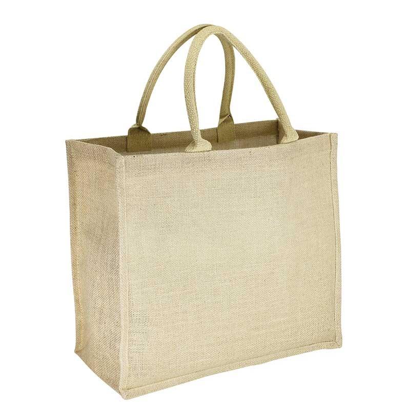 Bolsa de Yute modelo “Shangri-La”, con recubrimiento laminado interior. Fuelle de yute. Manillas de cordón acolchado de yute de 40 x 1.5 cm. aprox. c/u.