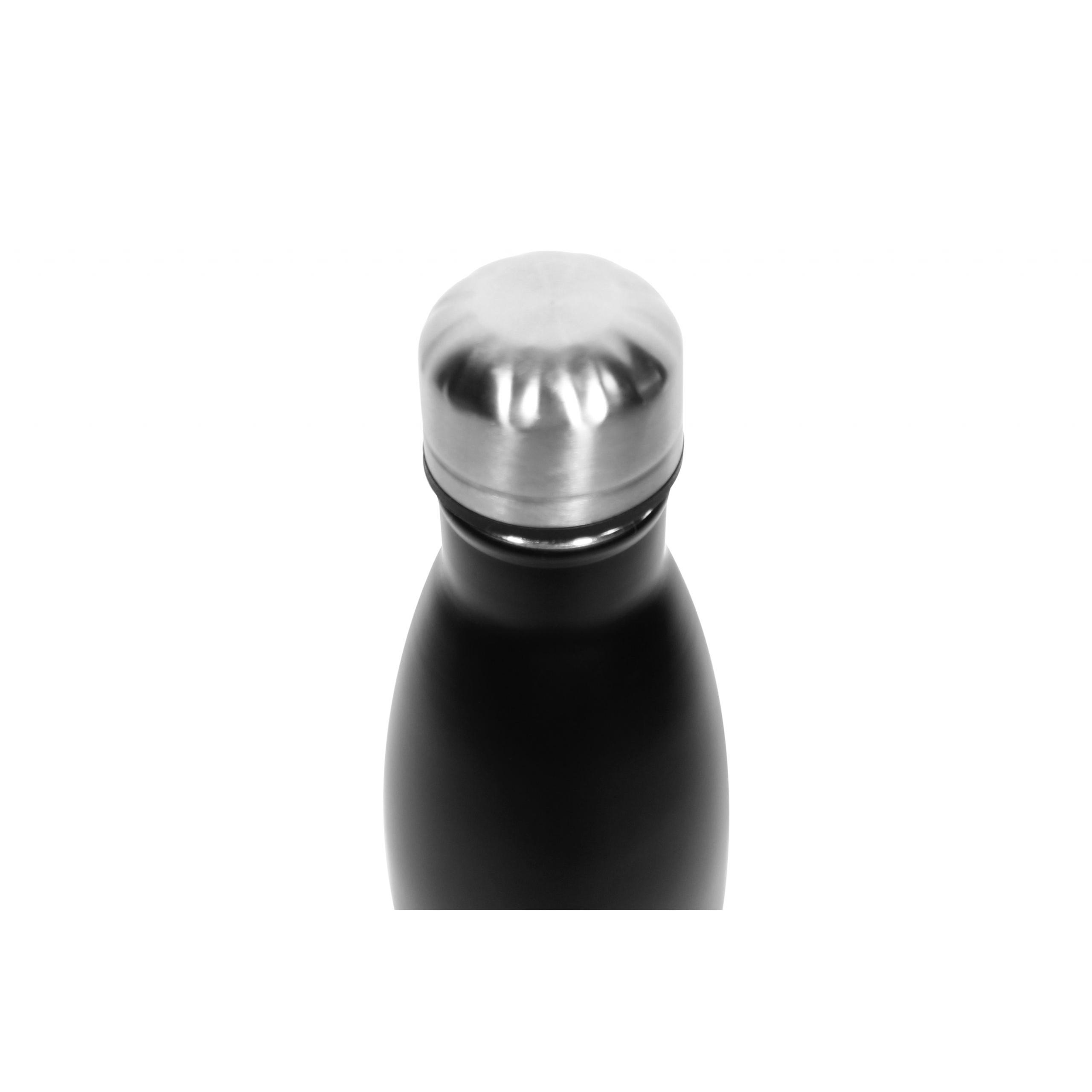 Acero inoxidable. Vaccum. Botella que mantiene la temperatura de las bebidas frías 24 hs y caliente 12 hs. Tapa a rosca metálica color plata y la base del mismo tono.