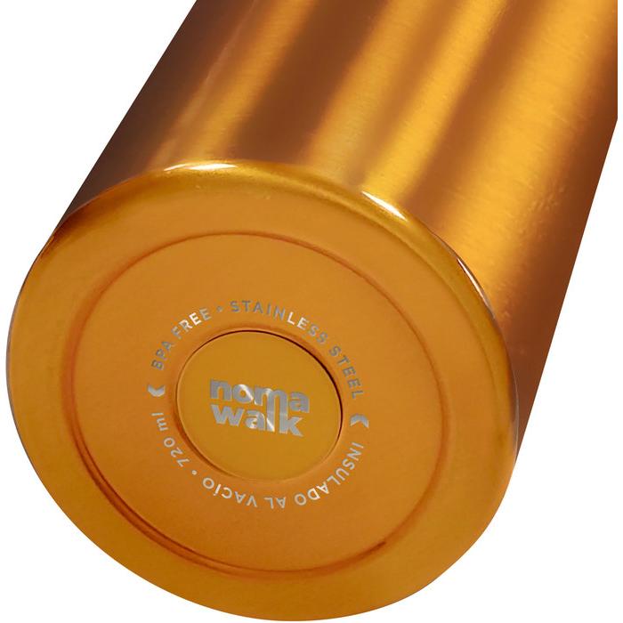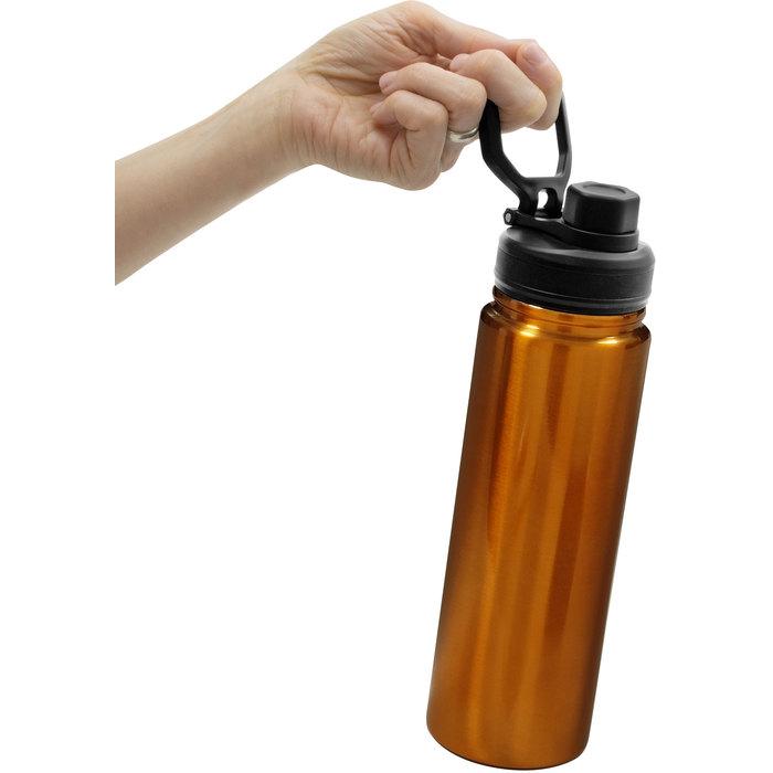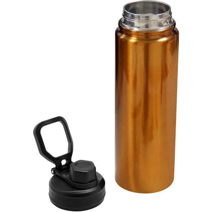 Botella doble pared, sellada al vacío. Tamaño Ø 7,5 x 26 cm. Capacidad 720 ml. Botella doble pared, sellada al vacío. Interior en acero 304 y exterior en acero 201. Tapa con anillo de silicona, boquilla con cierre a rosca antiderrame y manija plástica para su agarre. Mantiene hasta 12 hs la temperatura de las bebidas calientes y 24 hs de las bebidas frías. Presentación en caja de regalo.
