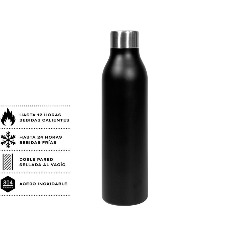 Pintura color negro mate. Tapa de acero a rosca. Mantiene por más de 12 hs la temperatura de las bebidas calientes y 24 hs de las bebidas frías. Presentación en caja de regalo.