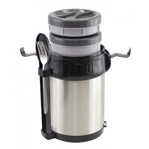 Botella doble pared, sellada al vacío. Interior de acero 304 y exterior de acero 201. Tapa a rosca de acero 201, interior plástico con anillo de silicona. Asa de silicona para un transporte fácil. Pintura con terminación suave al tacto. Mantiene hasta 6 hs la temperatura de las bebidas calientes y 12 hs de las bebidas frías.