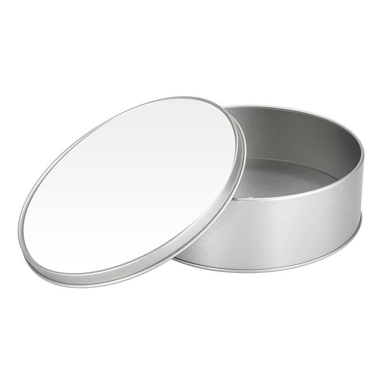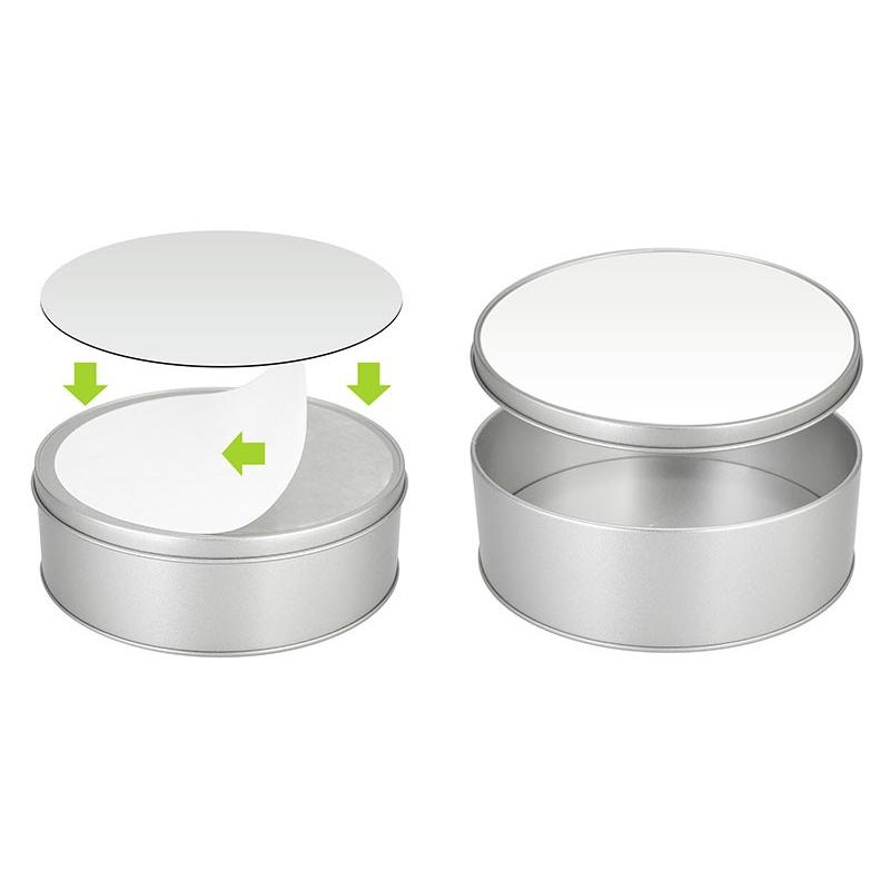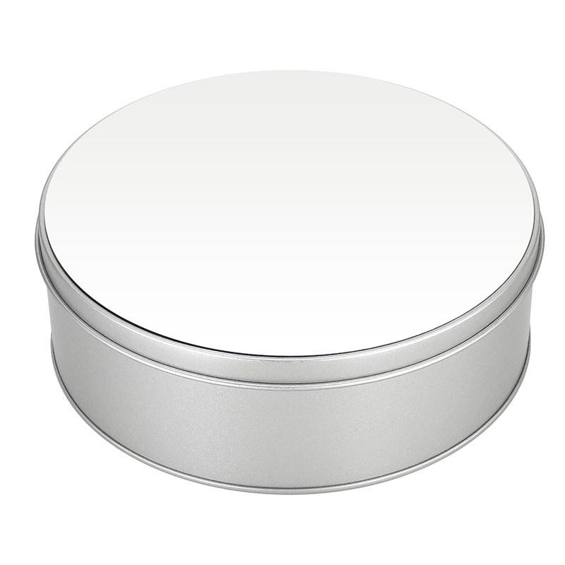 Caja Metálica redonda, con tapa y cubierta blanca para Sublimación. Presentación en bolsa de Polipropileno + caja de cartón forrado color natural. Ideal para usar como joyero, especiero o guarda-accesorios. Un regalo práctico y delicado para cualquier mujer.