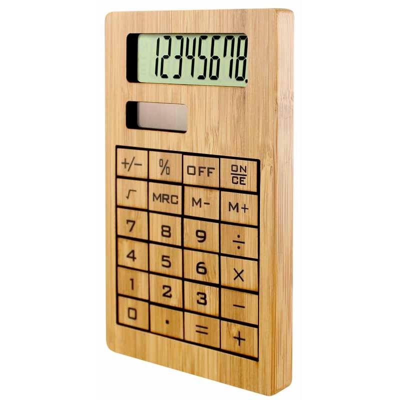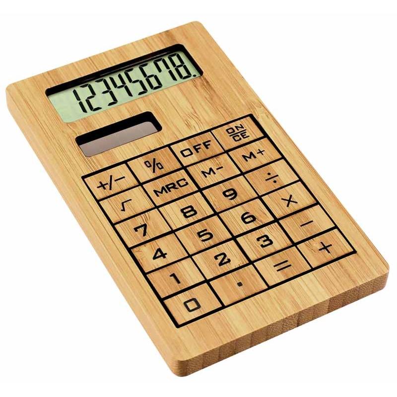 Calculadora 100% de madera de Bamboo. Visor solar 8 dígitos.