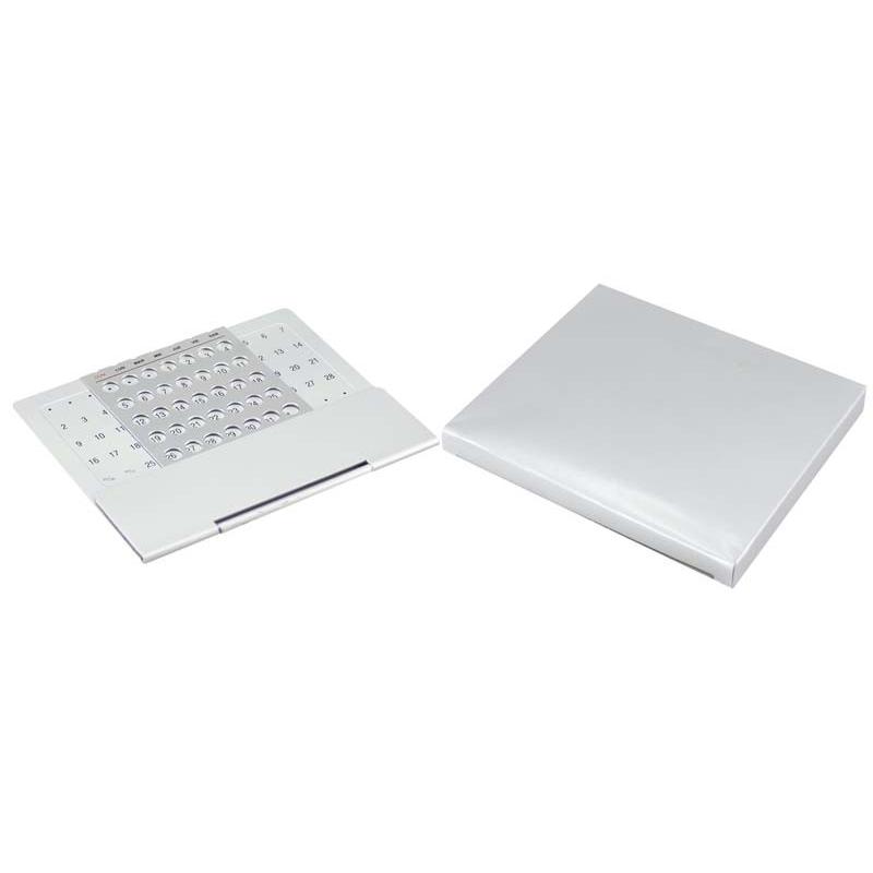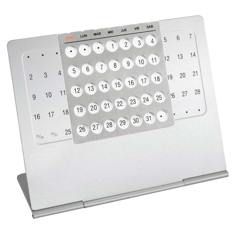 Calendario Eterno Metálico de escritorio, para todos los días, meses y años. Con ventana semanal móvil en español. Presentación en cajita plateada de regalo.