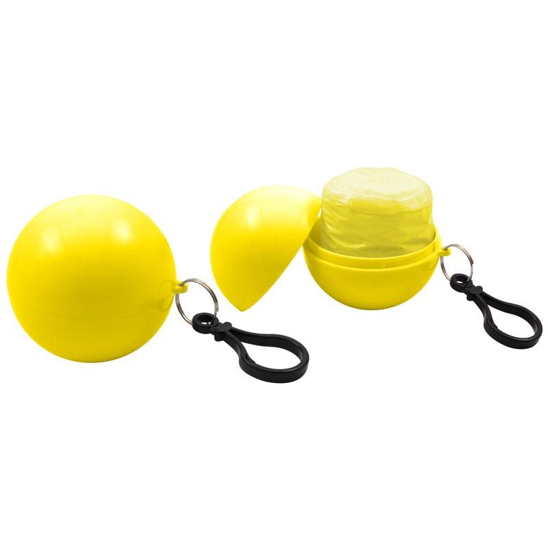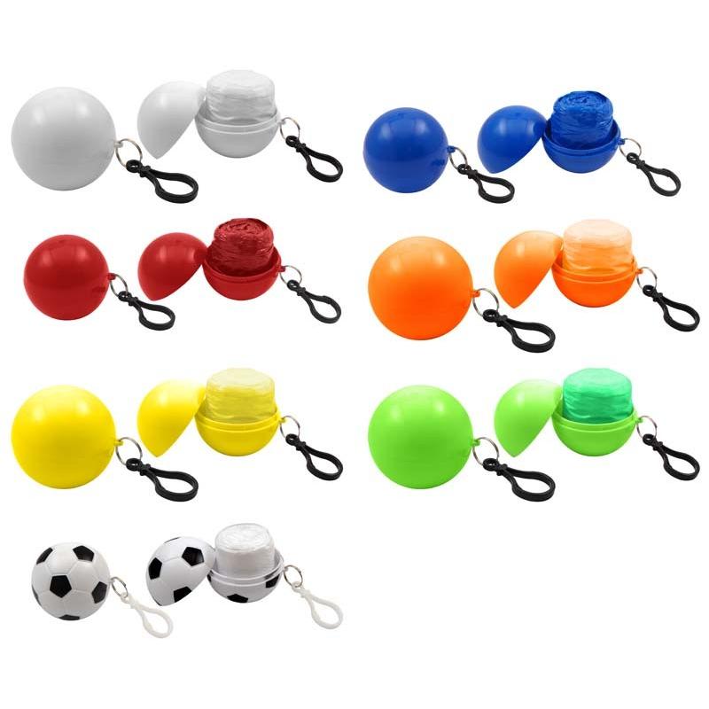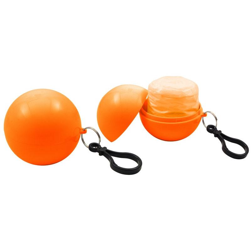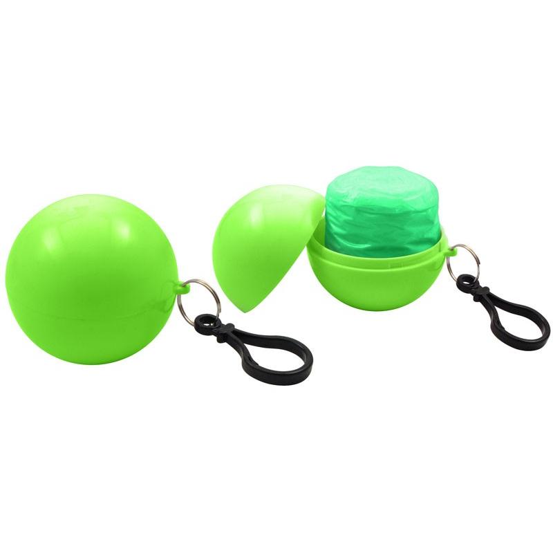 Capa de Agua (Poncho) comprimido en pelota plástica desmontable. Incluye un práctico mosquetón para colgar. Ideal para llevar adonde quieras y estar 100% preparado por si te pilla una lluvia repentina!!!