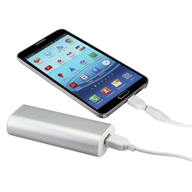 Cargador Power Bank USB metálico. Capacidad 5200mAh. Incluye cable USB + 4 adaptadores para i-Phone, i-Pad, Samsung Galaxy, Xperia, mini-USB, etc. Batería recargable incorporada. Presentación en caja de regalo laminada blanca.