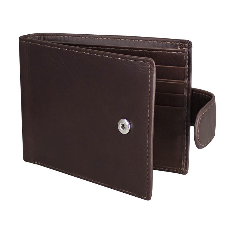 Deluxe Billetera de cuero natural Marrón con broche. Finas terminaciones. 17 compartimentos interiores (3 secciones). Alta resistencia al uso. Presentación en bolsa frozen y caja de cartón forrado negro texturado.
