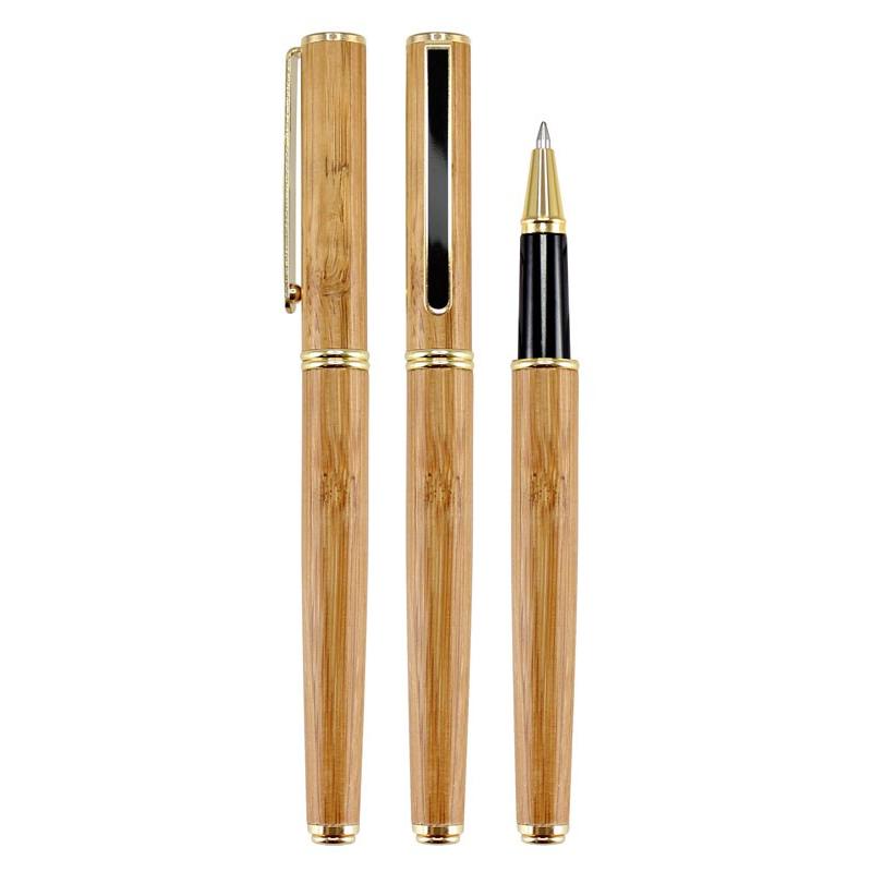 Deluxe Roller Pen Ejecutivo de Madera de Bamboo con terminales dorados, tinta negra.