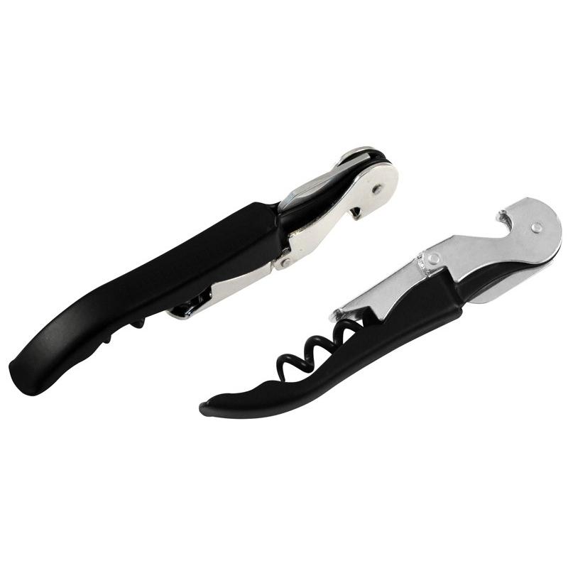 Descorchador profesional “Sommelier” de 2 tiempos de Acero Inoxidable con cubierta y tirabuzón de teflón. Presentación en caja de cartón plateada.