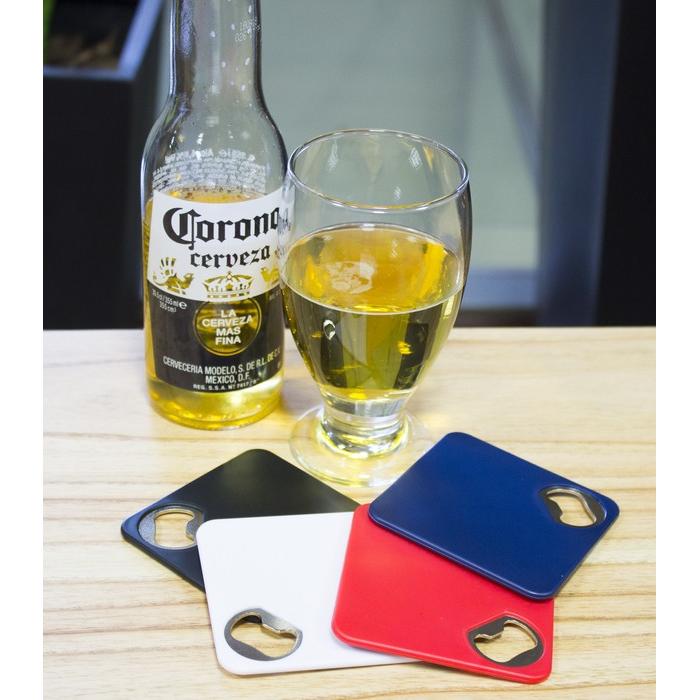 Destapador y posavaso, en uno de los lados cuenta con material E.V.A que se utiliza como antideslizante y protege la mesa, mantel o barra donde se apoya.