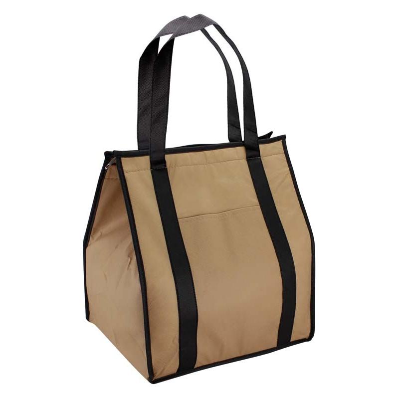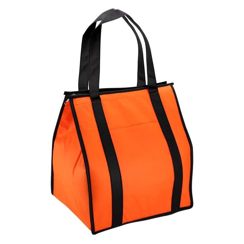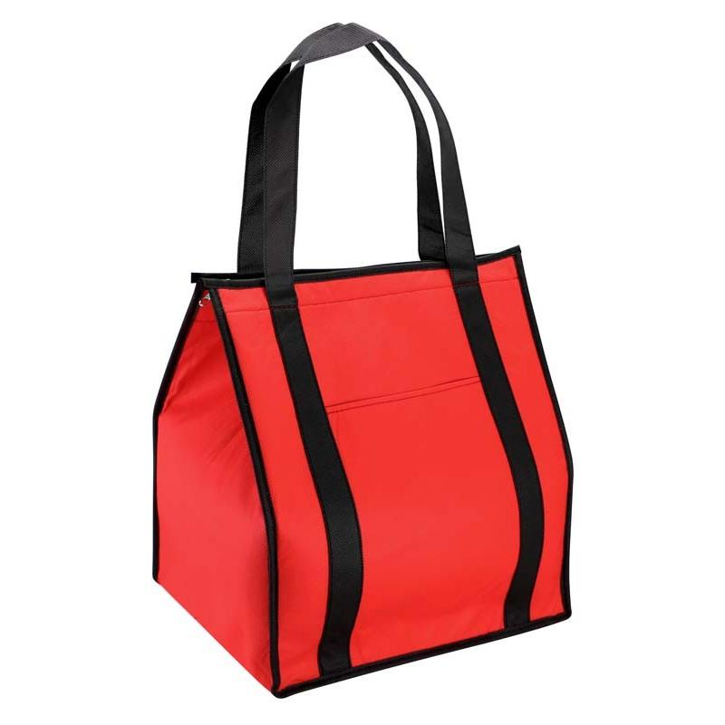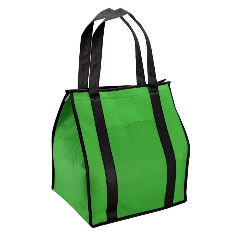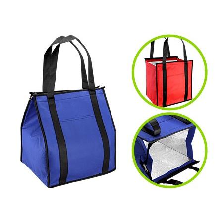 Cooler-Lonchera grande con bolsillo delantero. Tela exterior TNT 80grs. 100% reciclable y reutilizable. Tela interior PVC metalizado aislante.