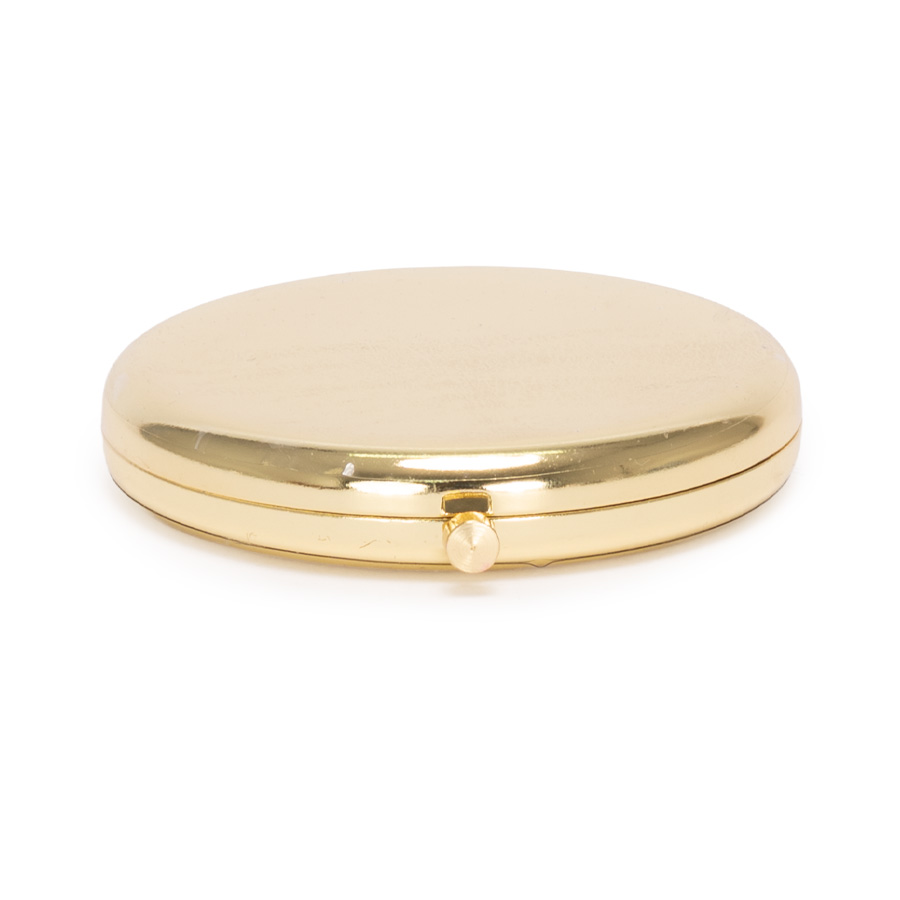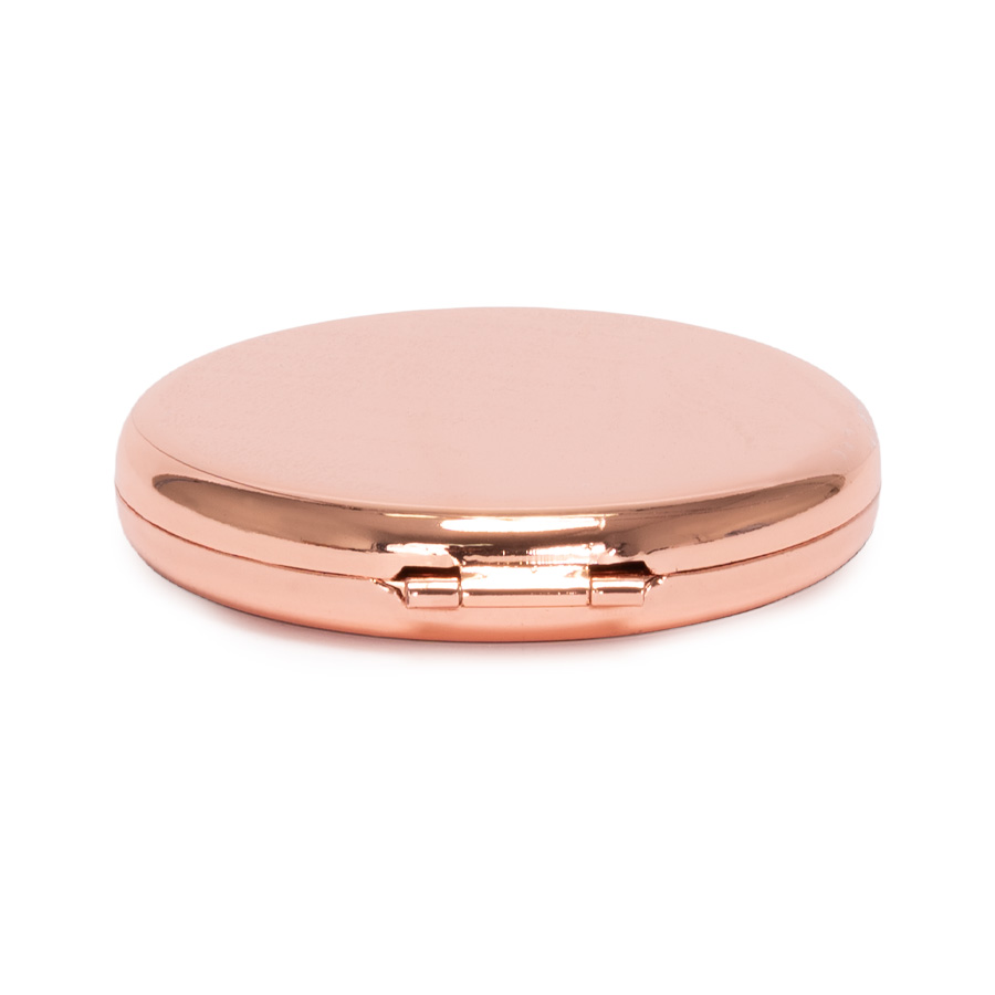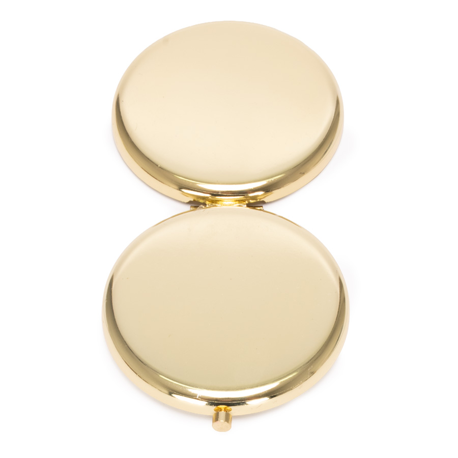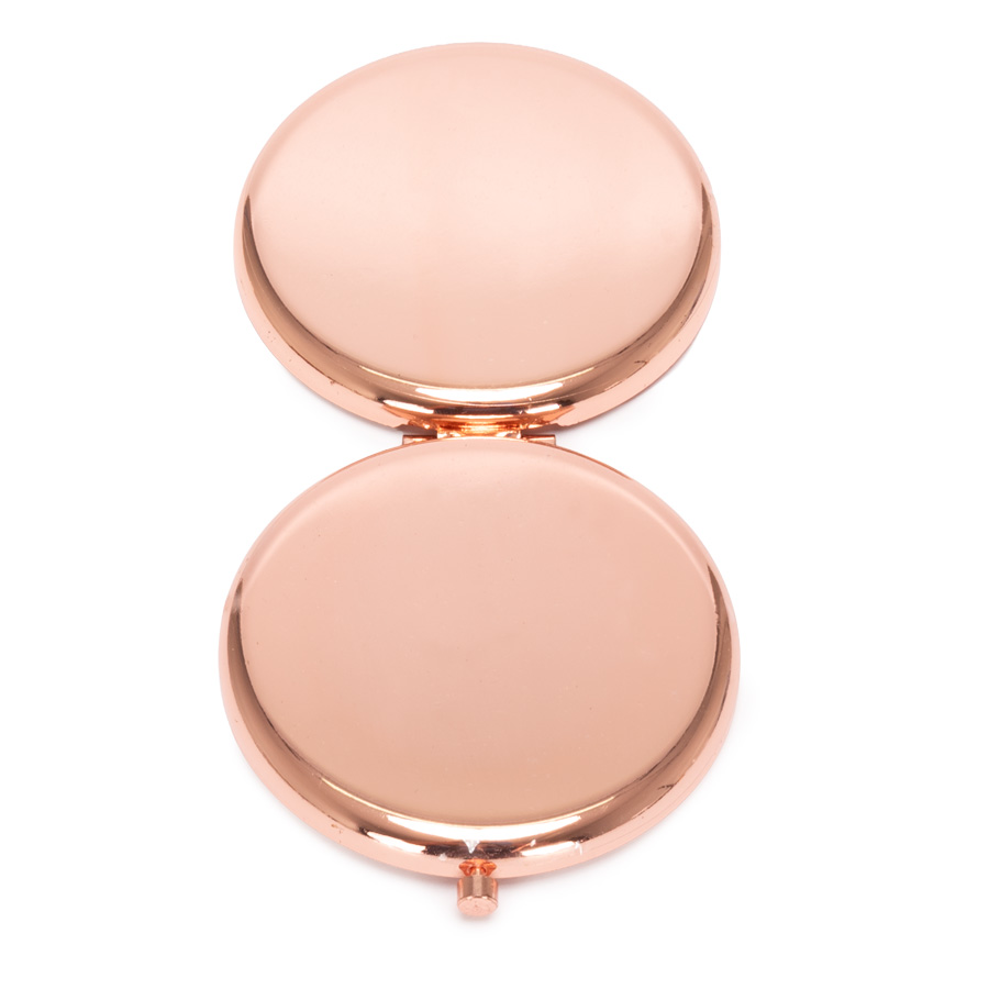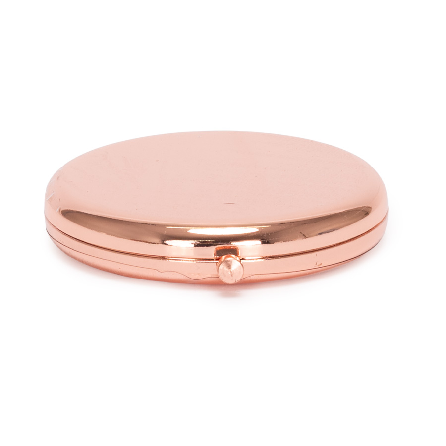 Espejo metálico de Acero inoxidable redondo doble. Interior con 2 espejos: uno normal, el otro con aumento. Presentación en bolsa espuma frozen + caja de cartón laminado negro. IMPORTANTE: este espejo viene con sellos plásticos en ambas caras exteriores, para protegerlo de manchas y rayaduras. Antes de imprimir o grabar logo, preocúpese de retirar los sellos plásticos.
