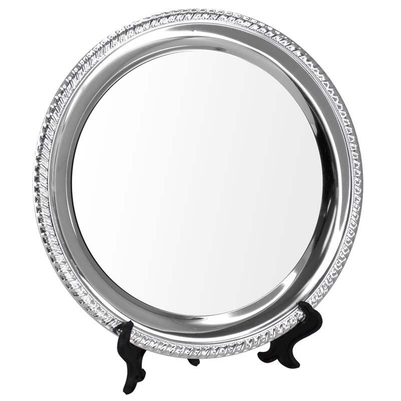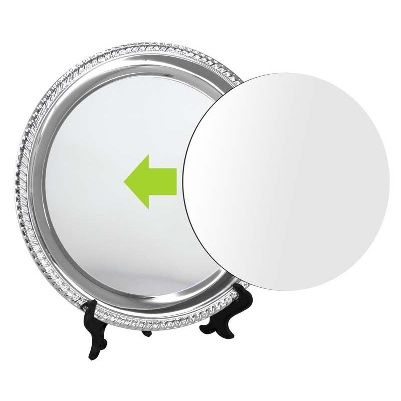 Galvano Plato de Acero inoxidable cromado tamaño grande, con circunferencia metálica para Sublimación. Presentación en bolsa plástica.