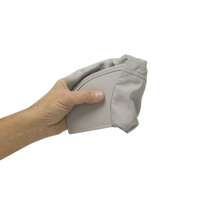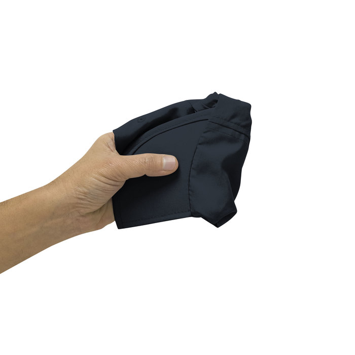 Gorra con visera y cubre cuello. 6 paneles. Orificios de ventilación bordados. Botón forrado. Banda absorbente de poliéster. Visera rígida plegable. Ajuste por banda elástica.