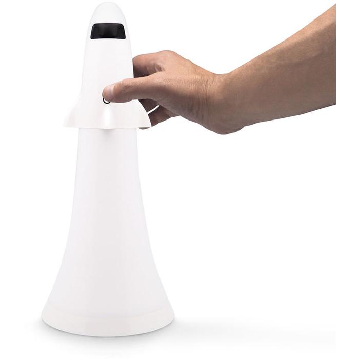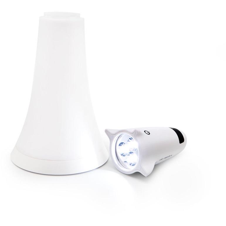Lámpara LED con conexión y carga USB. Tamaño Ø 13 x 31 cm. Plástico. Se puede usar como lámpara o linterna. Sensor táctil para regular la intensidad de la luz. Presentación en caja de regalo.