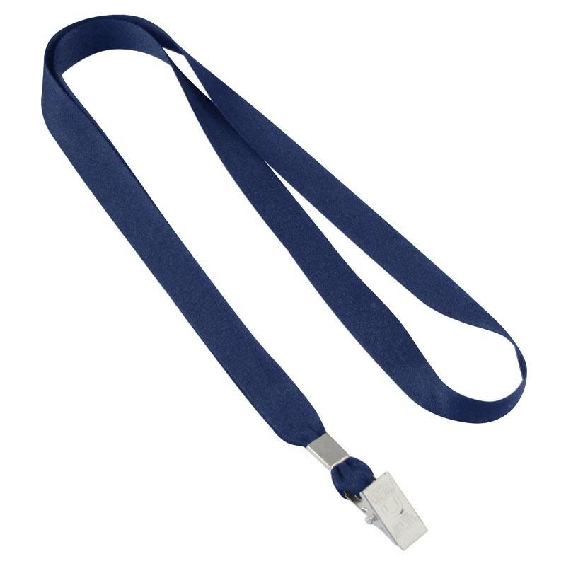 Lanyard Porta-Credencial clásico de polyester liso de 1.5 cm de ancho para sublimación, con terminal pinza metálica.