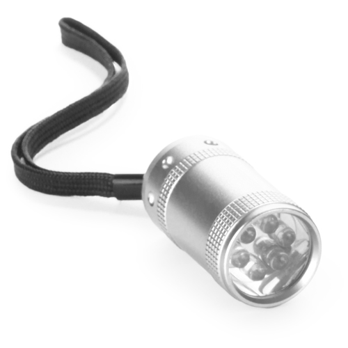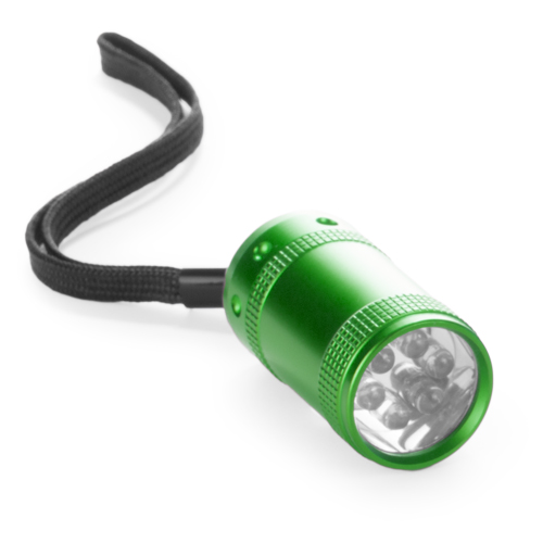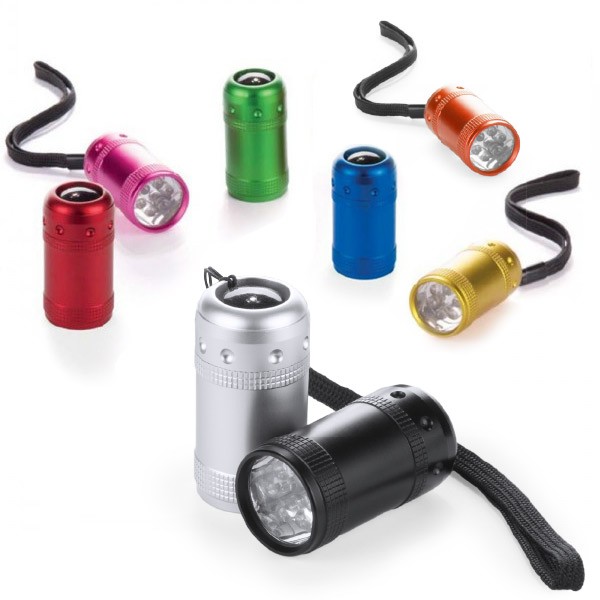 Linterna de 6 ledes de alto poder de iluminación y diseño minimalista. Con resistente cuerpo en aluminio antideslizante de variados y vivos colores brillantes; pulsador protegido con recubrimiento de resistente goma y cinta de transporte. Pilas de botón incluidas con film protector y presentada en caja individual.