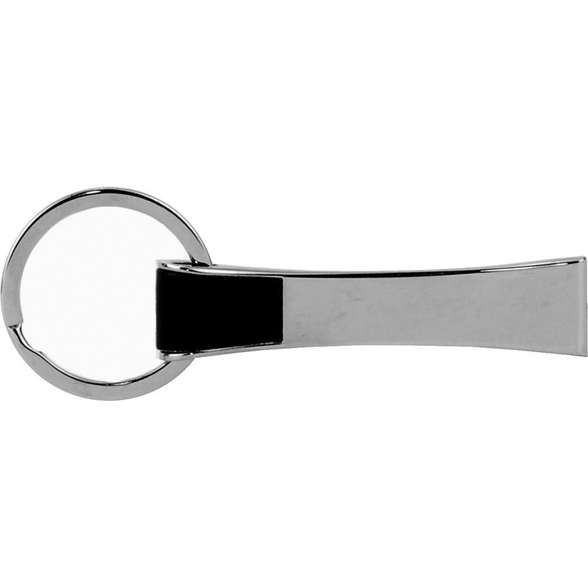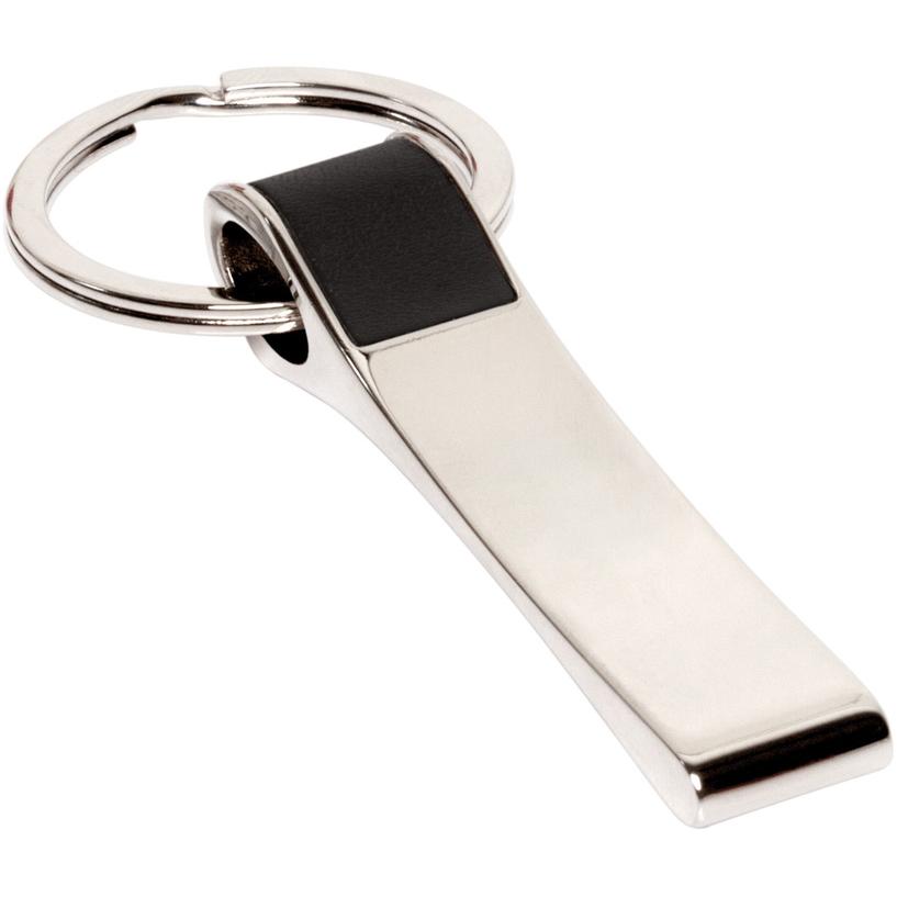 Llavero de metal y símil cuero. Tamaño 6,3 x 1,4 cm. Llavero plano con detalles en la parte superior símil cuero. Presentación en caja de regalo.