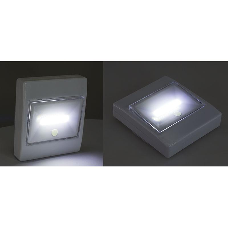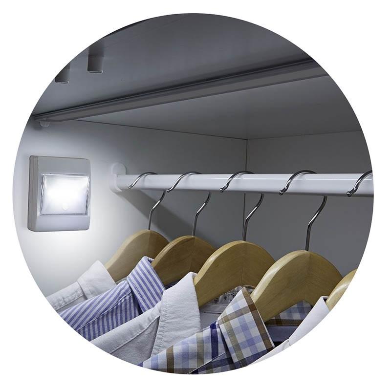 Luz LED de emergencia modelo “interruptor”. Contiene 2 bandas de velcro con autoadhesivo, para instalar en cualquier pieza. Incluye círculo “glow in the dark” para visualización de encendido. Usa 3 pilas AAA (no incluidas).