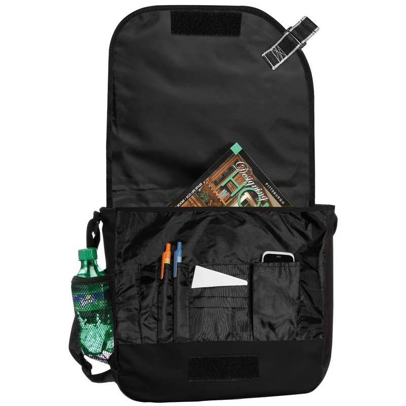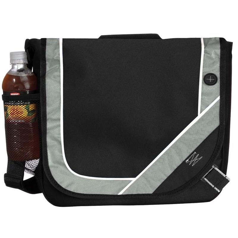 Maletín Portadocumentos de tela raquelada Polyester 600D modelo “Messenger”, con solapa delantera, organizador interior y salida para auriculares.