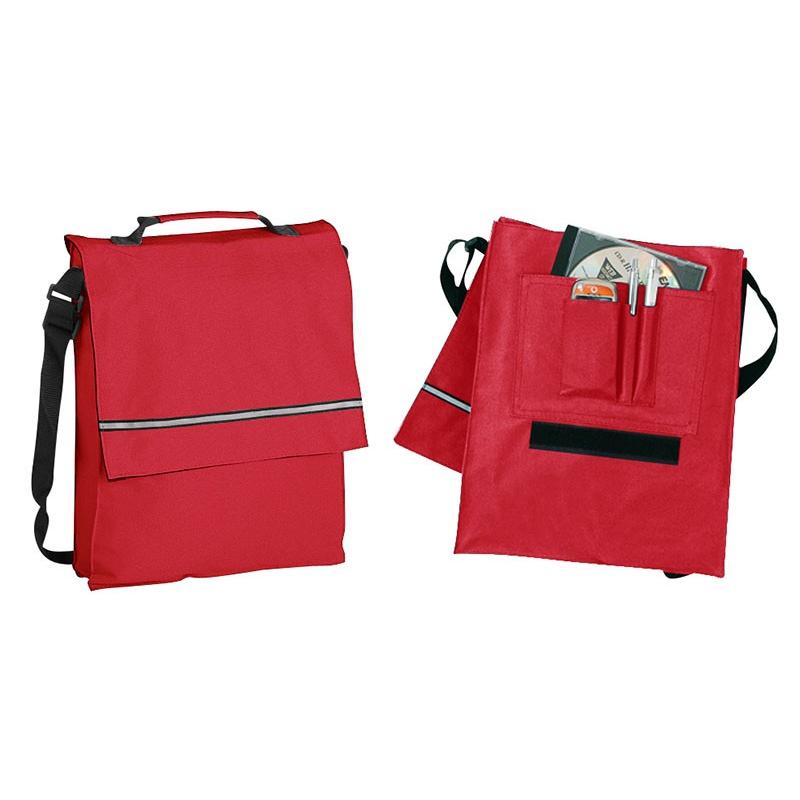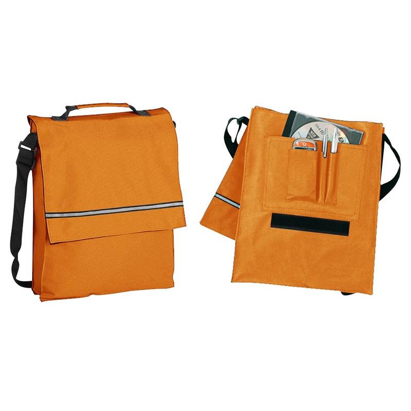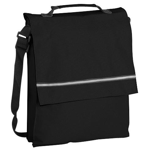 Maletín Portadocumentos de tela raquelada Polyester 600D modelo “Milan”, con solapa y bolsillo interior multi-accesorios. Incluye banda reflectante en la solapa.