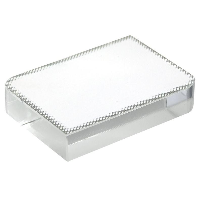 Mini-Trofeo rectangular de Cristal sólido para Sublimación, con 2 vértices redondeados. Presentación en caja de cartón azul.