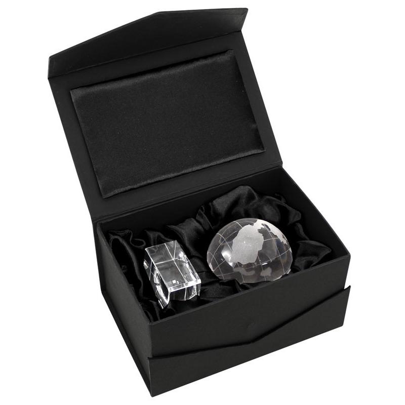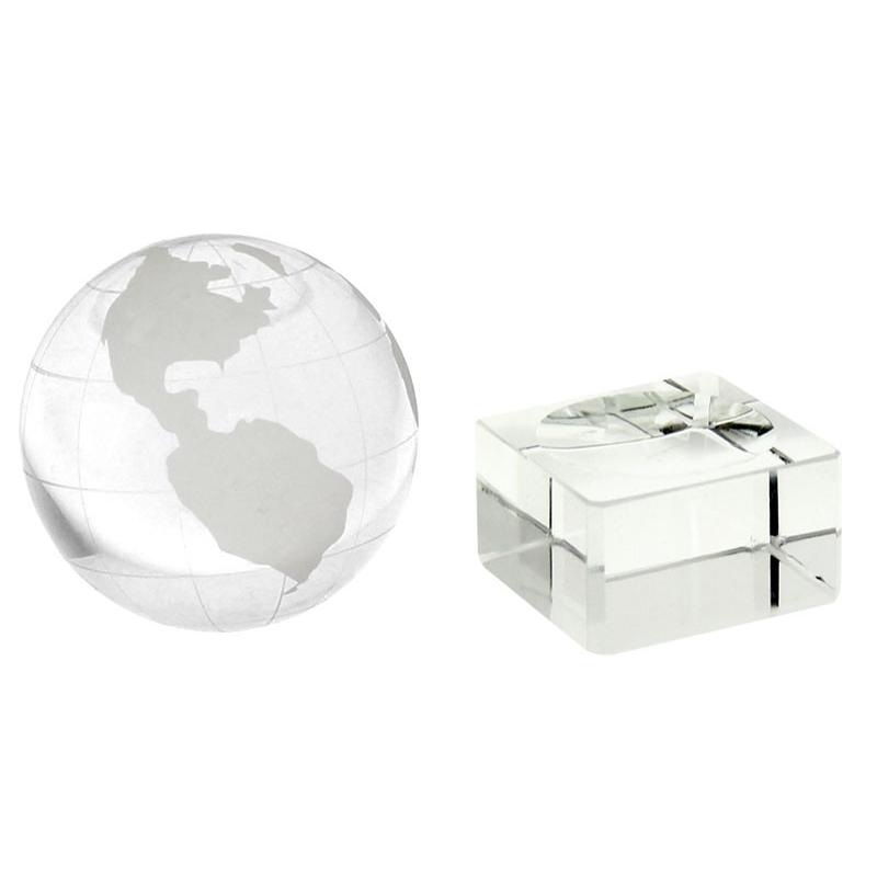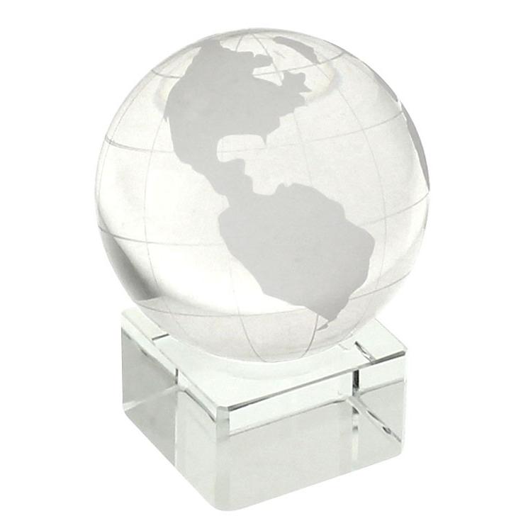 Mini Trofeo de Cristal modelo “World”. Presentación en caja de cartón forrado negro.