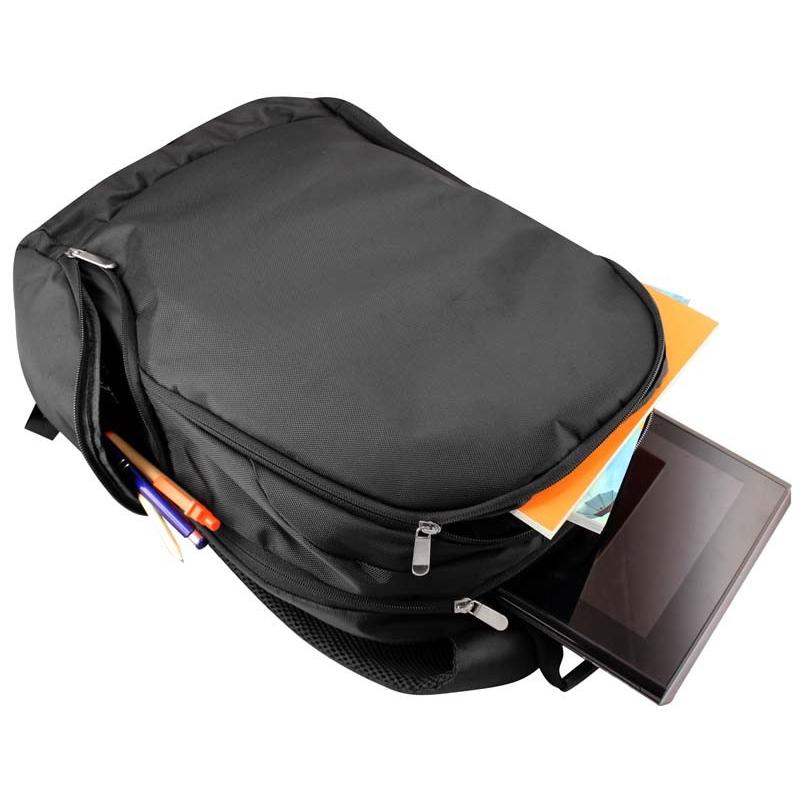Mochila Porta-Notebook modelo “Blacktop”, con bolsillo delantero y apartado interior acolchado para Notebook. Tela Polyester 840D.