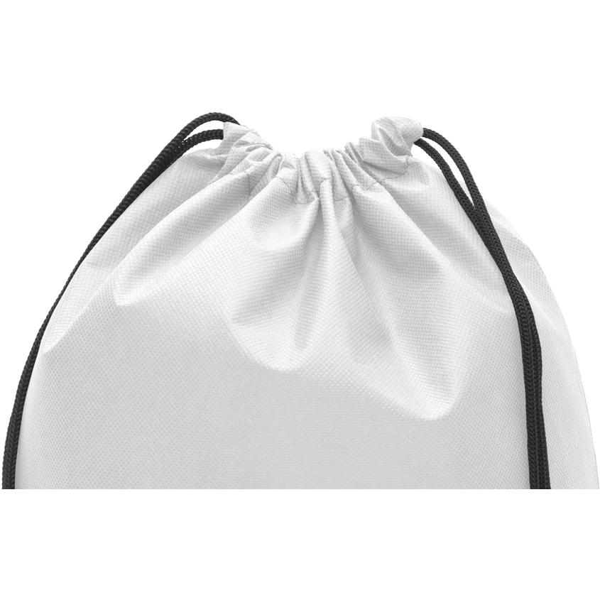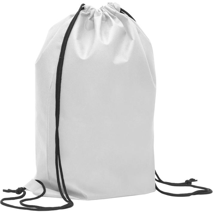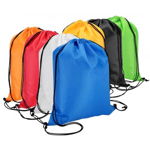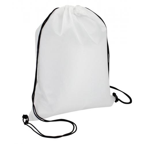 Mochila marinera con dos cordones. Tamaño 41 x 31 cm. Capacidad 4 litros aprox. Non Woven. Los cordones sirven para llevar la mochila en la espalda. La parte superior se cierra ajustando los cordones. En la parte inferior los cordones pasan por un ojal.