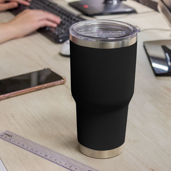 Mug doble pared sellado al vacío. Tamaño Ø 10 x 20 cm. Capacidad 850 ml. Acero Inoxidable. Tecnología Vacuum. Interior en acero 304 y exterior en acero 201. Pintura Powder Coat (pintura mas duradera y resistente a la corrosión y el paso del tiempo). Tapa plástica transparente a presión con anillo de silicona.. Mantiene las bebidas frías o calientes por más tiempo. Presentación en caja de regalo.
