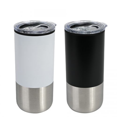 Mug térmico metálico doble pared aislante, modelo «DRIVEN», interior Acero inoxidable 304 SS, exterior Acero inoxidable 201 SS color negro mate, con cinturón de silicona negra. Producto BPA FREE, para el contacto con líquidos y alimentos. Tapa rosca de plástico PP con sello cilíndrico de silicona y sistema de cierre/apertura antiderrame. Fondo de silicona negra ABS anti-deslizante. Capacidad 500ml. Presentación en bolsa plástica OPP + caja de regalo de cartón laminado negro.