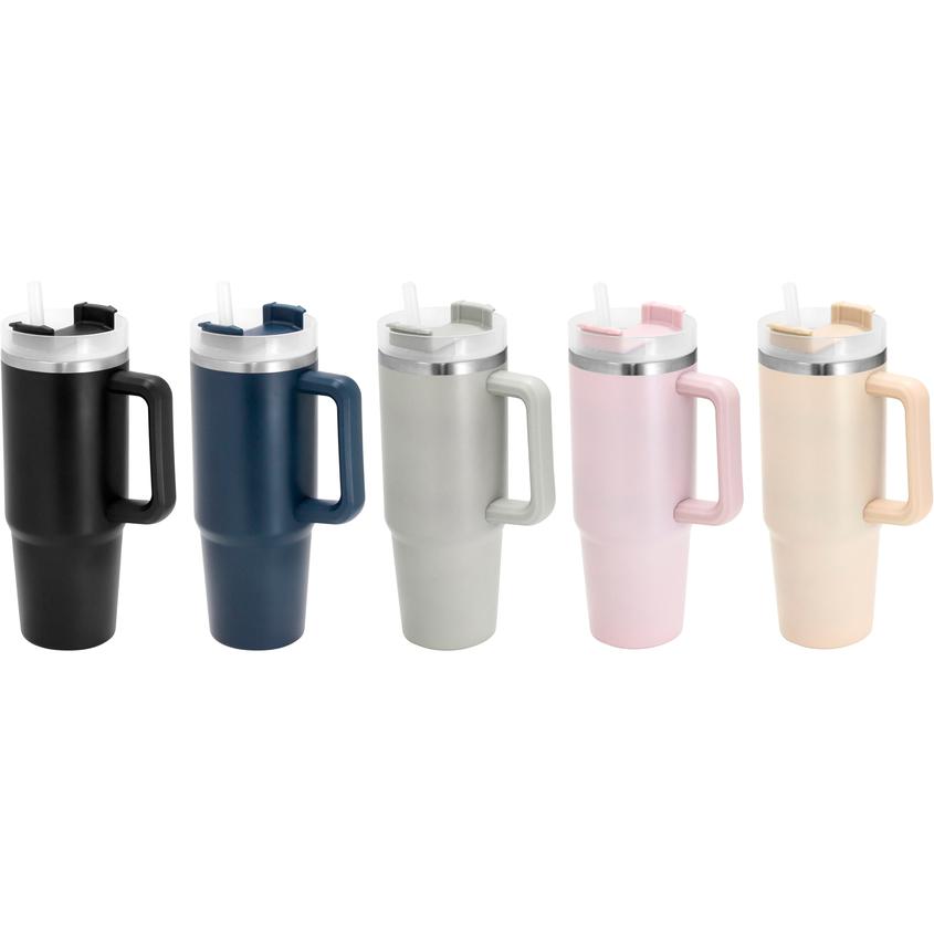 Mug doble pared, sellado al vacío con sorbete. Tecnología Vacuum. Interior en acero 304 y exterior en acero 201. Tapa plástica transparente a rosca con anillo de silicona. Cierre giratorio porta sorbete. Sorbete plástico translucido. Pintura exterior con acabado mate. Mantiene hasta 12 hs la temperatura de las bebidas calientes y 24 hs de las bebidas frías.