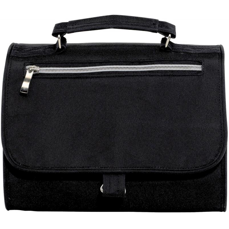 Neccessaire tamaño 25 x 8 x 18 cm cerrado / 25 x 59 cm abierto. Polyester 600D. Colgante. Con cierre, 3 compartimentos interiores, 1 compartimento exterior en la parte frontal con cierre.