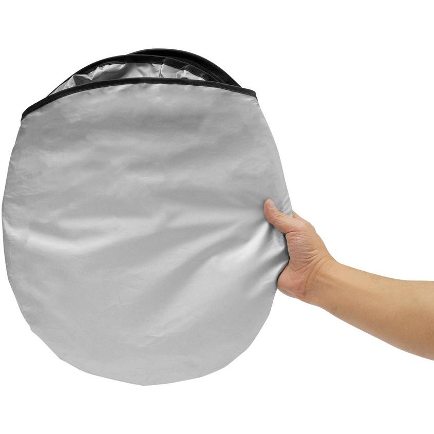 Parasol plegable. Tamaño 130 x 60 cm. Poliester con recubrimiento plata. Diámetro de la bolsa contenedora : 35 cm.