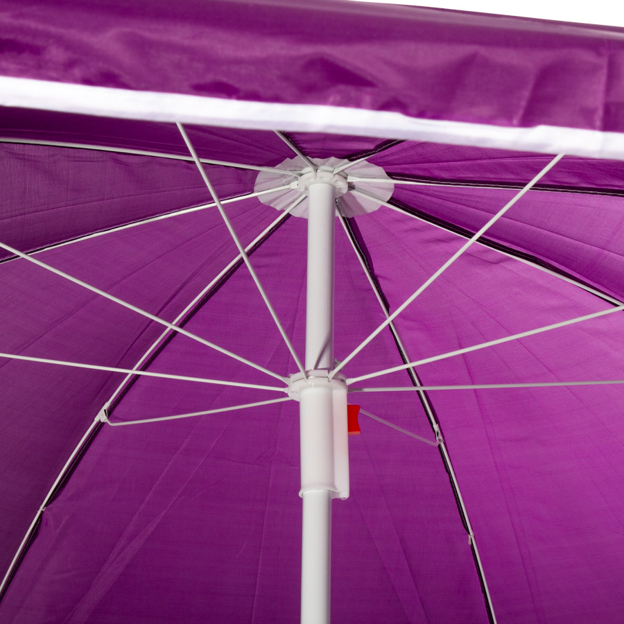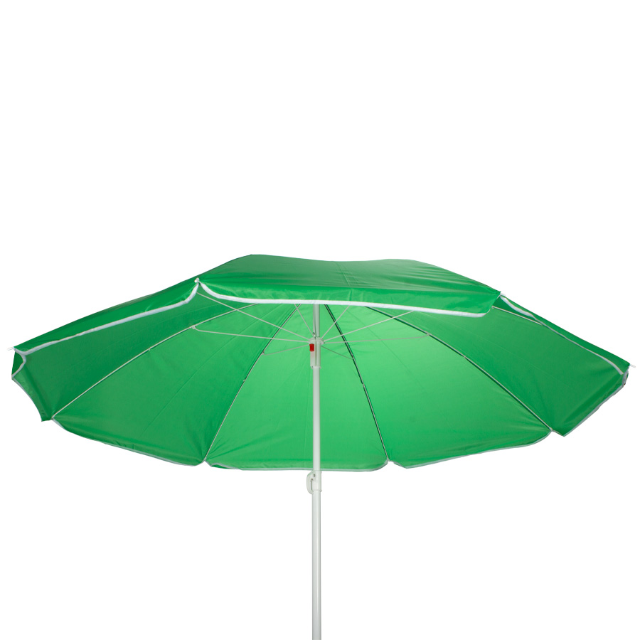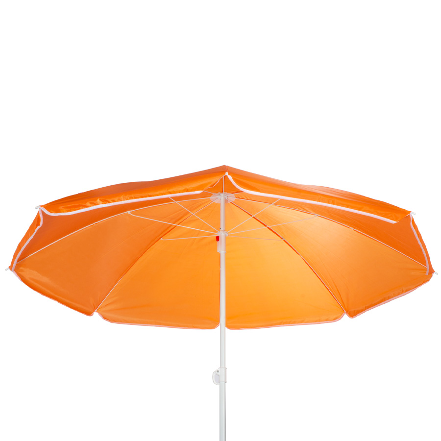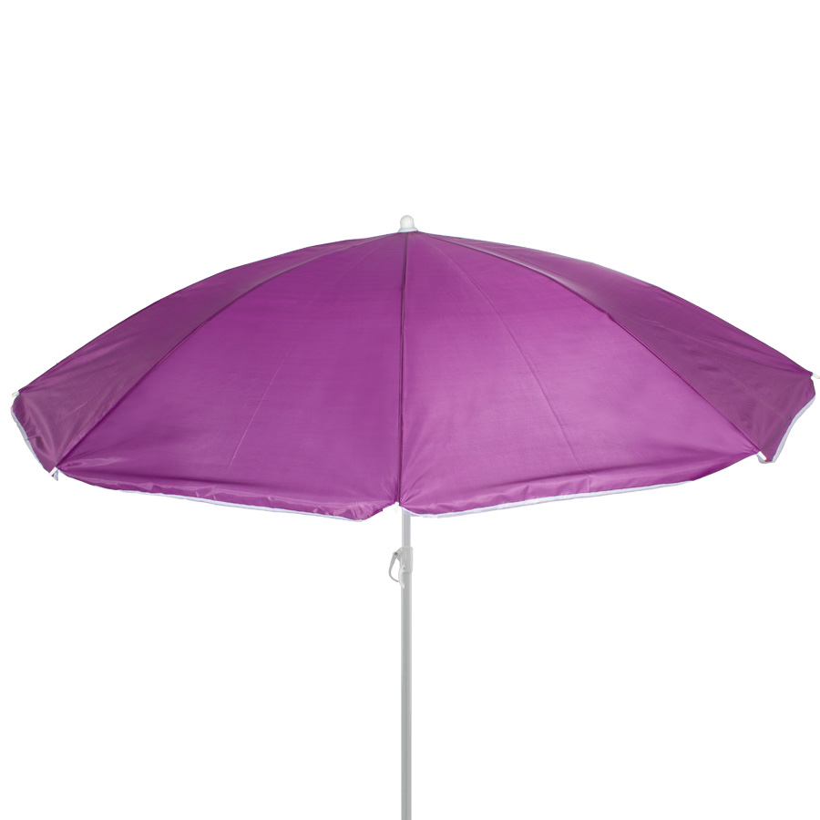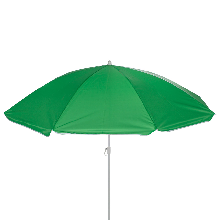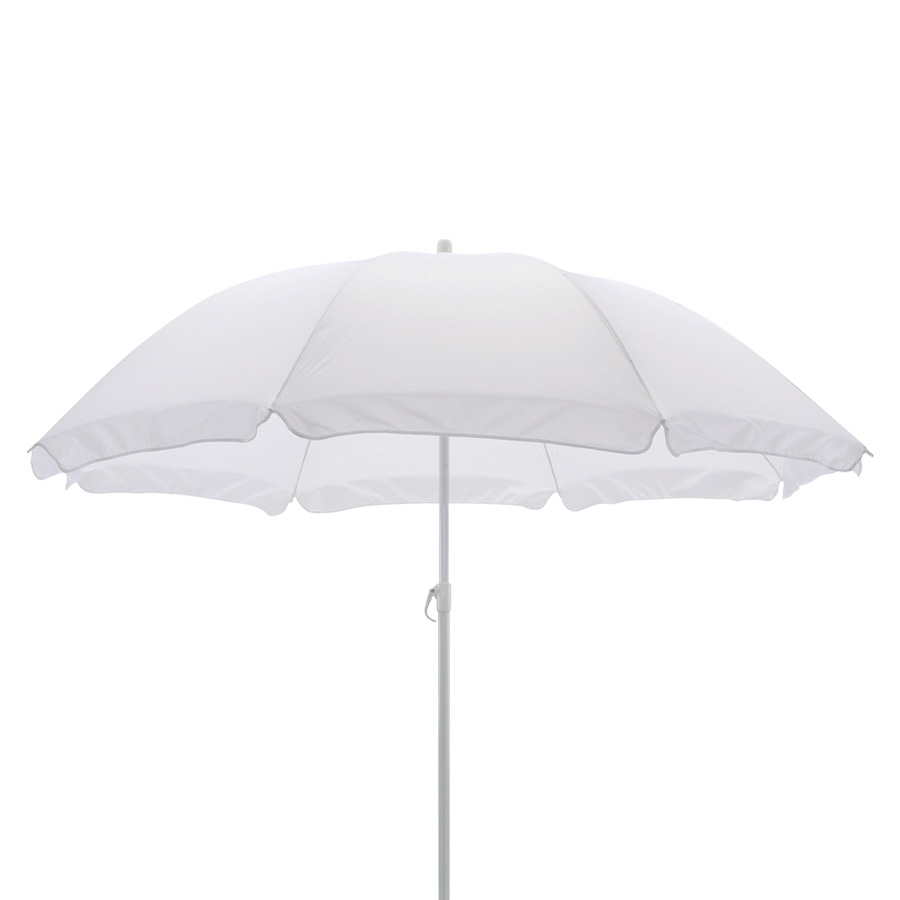 Quitasol en tela Nylon 190T. Incluye 2 varas metálicas blancas desmontables, la inferior de 101 cm y la superior de 95 cm. Presentación en funda de PVC transparente con broche.