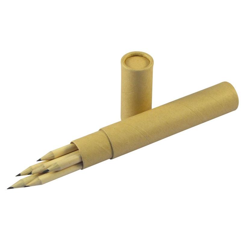 Set de 6 Lápices Grafito Negro, en Estuche cilíndrico de Cartón Reciclado.