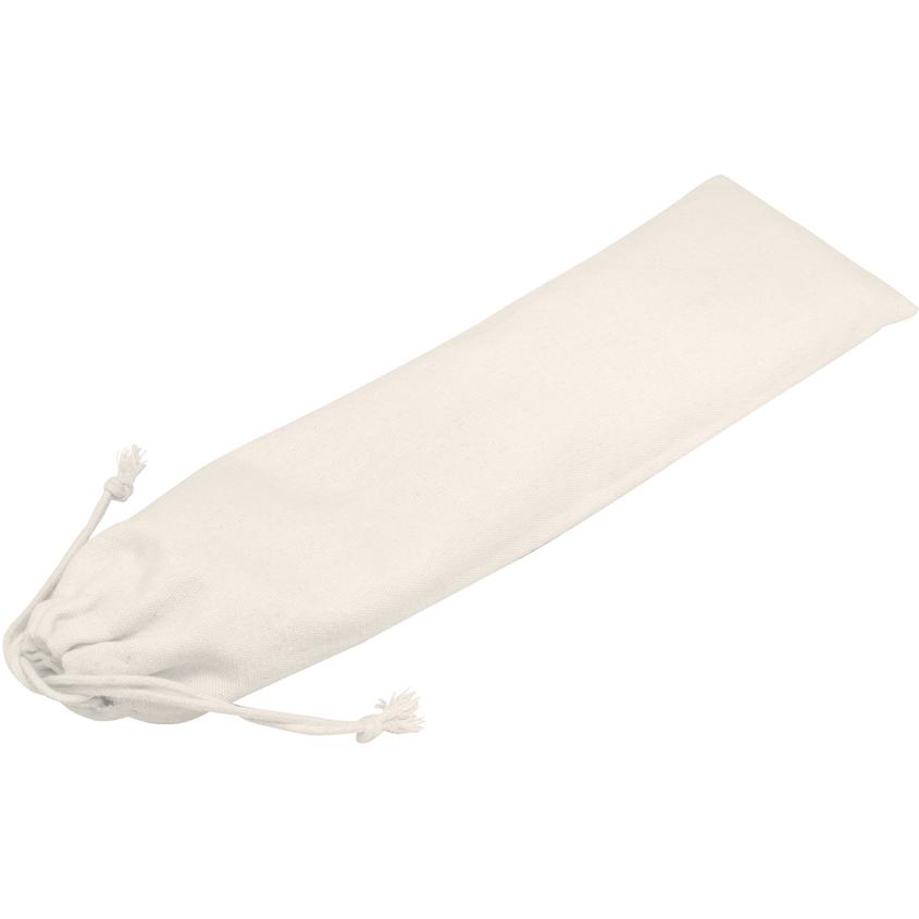 Set de cubiertos. Acero Inoxidable 420.  5 elementos: bombilla, cepillo para bombilla, cuchara, tenedor y cuchillo. Mango de madera para los 3 cubiertos. Todo el set está contenido en un estuche de canvas color crudo. Presentación en caja de regalo Kraft.