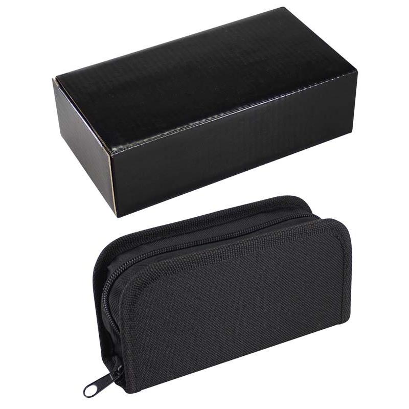 Set de Limpieza de Calzado en Estuche de tela negra. Incluye pasta de zapato color neutro, paño amarillo, esponja y escobilla. Presentación en elegante Estuche barnizado negro.