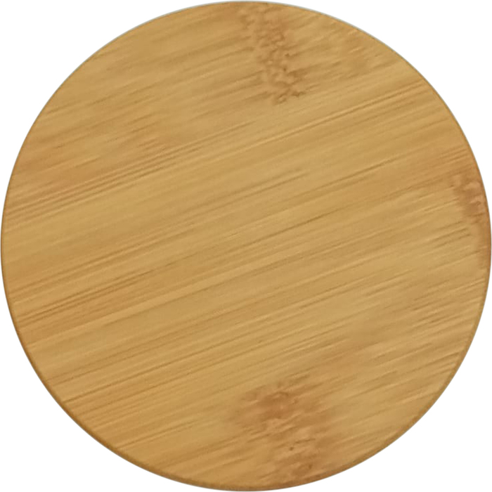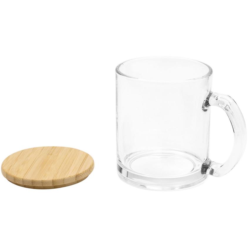Taza de vidrio con tapa de Bamboo barnizado.