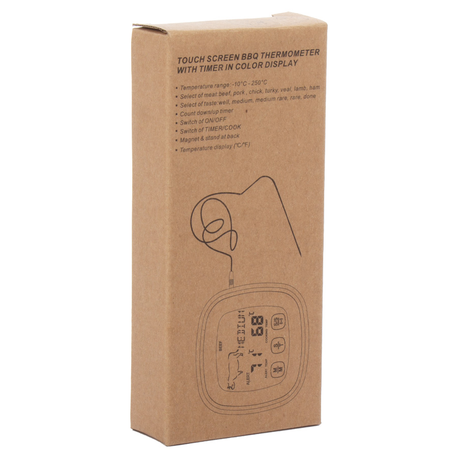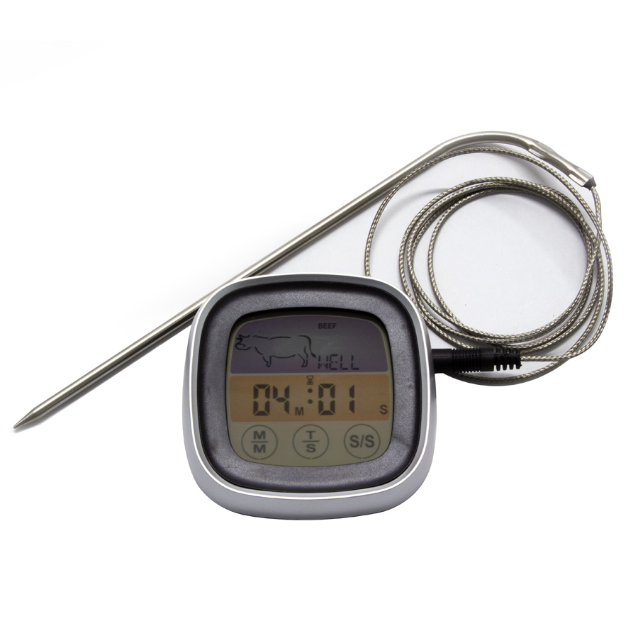 Termómetro Digital para Carne con timer y funciones en °C o °F. Resistente al calor hasta 250°C (482°F).