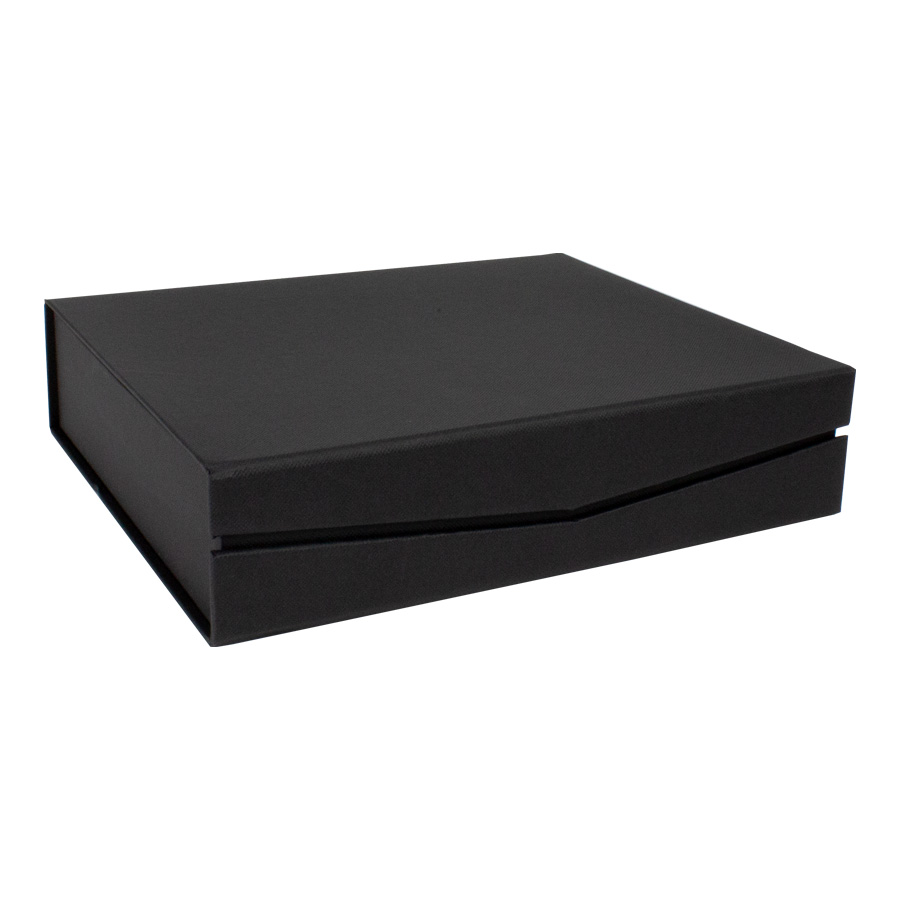 Presentación: Caja de cartón forrado negro con cierre imantado, interior acolchado de espuma y tela poliéster satinado negro, con troquel.