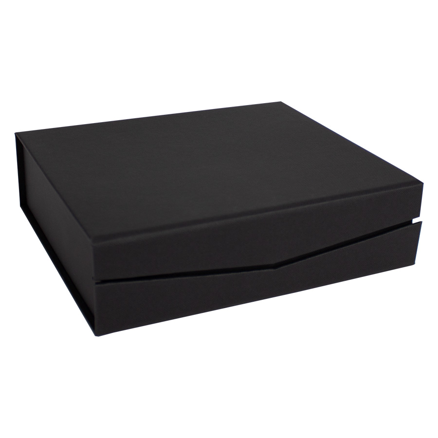 Presentación: Caja de cartón forrado negro con cierre imantado, interior acolchado de espuma y tela poliéster satinado negro, con troquel.
