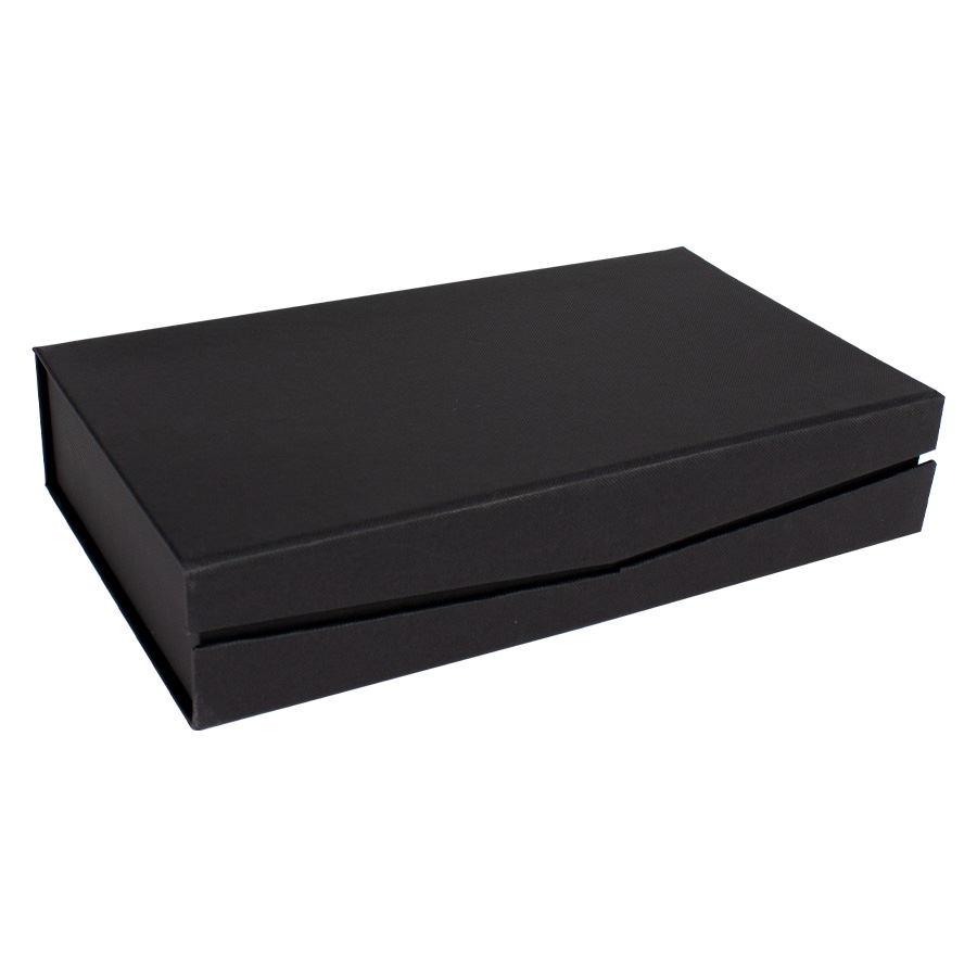 Presentación: Caja de cartón forrado negro con cierre imantado, interior acolchado de espuma y tela poliéster satinado negro, con troquel.
