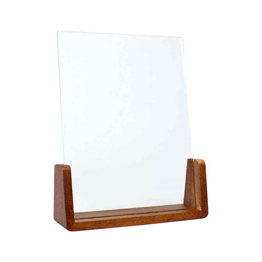 Elegante Trofeo Galvano modelo «Spitz», base de madera barnizada y cristal en su parte superior. Presentación en caja de cartón forrado negro con cierre imantado, interior acolchado de espuma y tela poliéster satinado negro, con troquel.